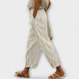 זואי - מכנסיים מודפסים עם דפוס עלי גפן