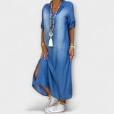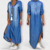 ליאה - שמלת ג'ינס ארוכה עם חריצים